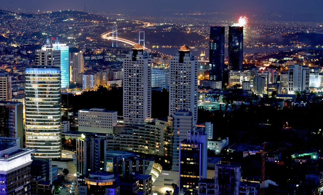 Levent business district at night.